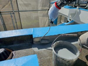 色替え塗装、防水作業の途中の写真になります。