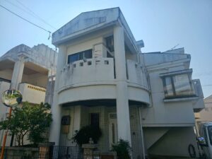 沖縄市桃原2階建て住宅にて防水作業、足場解体が終わり完工いたしました。