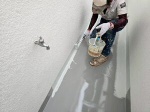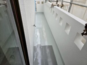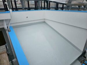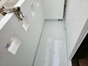 防水作業が終わり、足場解体作業、タッチアップもおわりました。